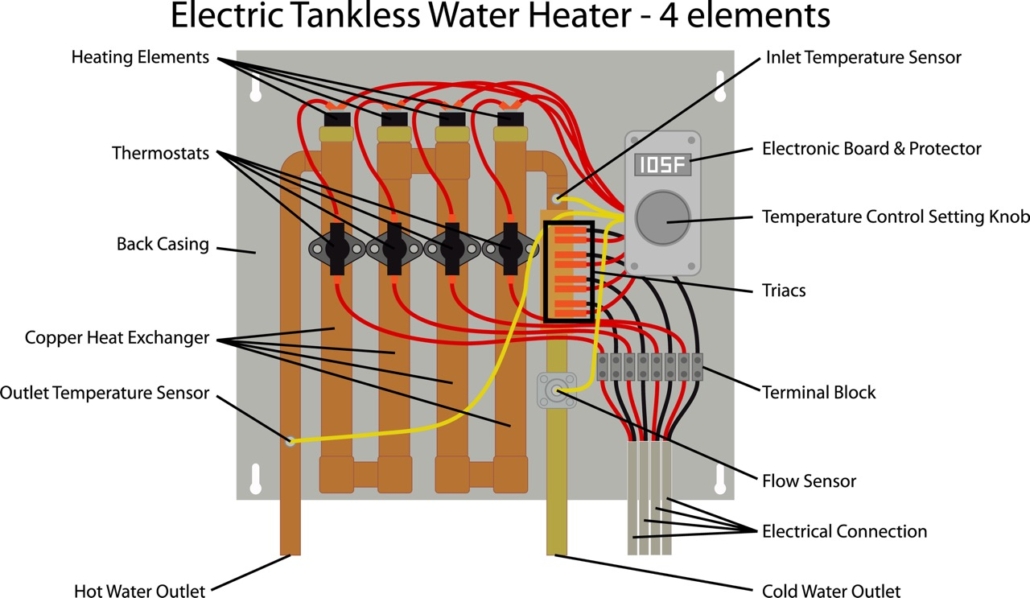 - How it works: When you turn on a hot water tap, cold water flows through the unit. A powerful gas burner or electric element ignites and instantly heats the water as it passes through.